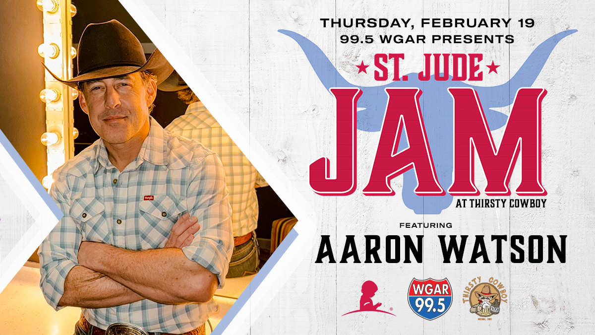 Join WGAR at Thirsty Cowboy in Medina on Thursday, February 19th for an incredible night of country music to benefit St. Jude Children's Research Hospital. The 2026 St. Jude Jam features Aaron Watson!
